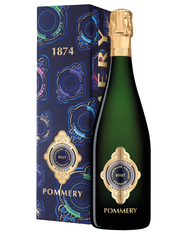 Lo Champagne Brut Apanage 1874 della celebre Maison Pommery è una cuvée esclusiva che celebra il 150° anniversario della creazione del primo Champagne Brut al mondo. Questa speciale edizione riflette la storica decisione di Madame Pommery di produrre uno Champagne secco. Il vino è un assemblaggio di Pinot Noir, Chardonnay e Pinot Meunier, con uve provenienti da 17 villaggi selezionati della Champagne, soprattutto dalla Montagne de Reims.
