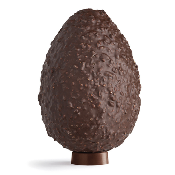 Il nuovo uovo di Pasqua firmato La Perla di Torino prende vita da una lavorazione artigianale “rocher” che ne esalta la ricetta esclusiva a base di cioccolato fondente con fave di cacao tostate e arancia. Confezionato in un elegante packaging che unisce i toni tenui dell’azzurro polvere al calore scintillante dell’oro e all’avorio. Confezionato a mano. Contiene sorpresa.