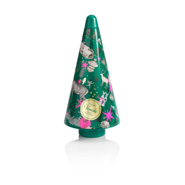 Latta in metallo a forma di pino natalizio con cioccolatini Perla assortiti. Un regalo super goloso per addobbare la casa e da gustare in compagnia. Immergiti nel nostro villaggio di Natale e scopri la nuova collezione natalizia in edizione limitata disegnata da Anna Higgie.