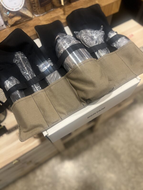 Sono realizzati in acciaio inox e di ottima fattura, ordinati su un’elegante Borsa da Viaggio portatile personalizzata Mazzetti.