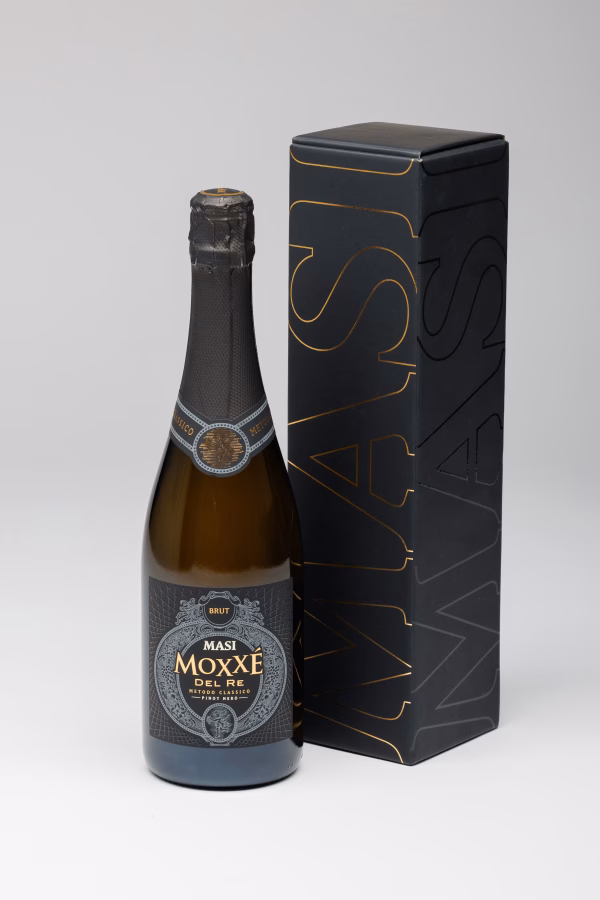 Moxxé del Re deve il suo nome alla linea “Moxxé” degli Spumanti di Masi e alla tenuta “Casa Re” nell’Oltrepò Pavese, territorio emblematico del Metodo Classico Italiano con uve 100% Pinot Nero. Negli anni Venti del secolo scorso, la casa in stile liberty che domina la tenuta, spiccava in eleganza e bellezza, tanto che gli abitanti della zona la chiamarono “Casa del Re”. In seguito, “Casa Re” diventò il toponimo della zona, fi no all’acquisto di Masi nel gennaio 2024.