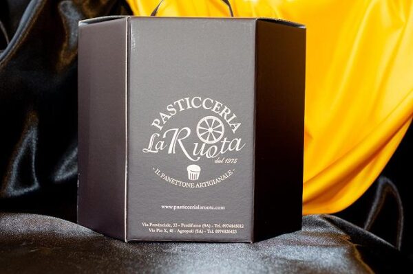 Il  Pandoro Pasticceria la Ruota è preparato in maniera artigianale con lievito madre naturale e materie prime selezionate, senza l’aggiunta di conservanti e coloranti artificiali, lasciato lievitare naturalmente per 36 ore nel cuore del Parco Nazionale del Cilento.