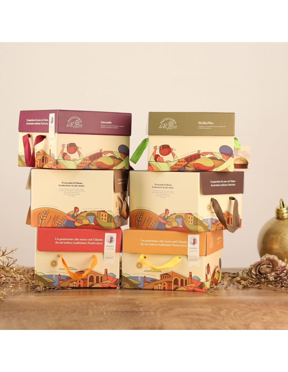 Ingredienti Farina di grano tenero “00”, burro, tuorlo d’uovo, uva sultanina australiana 6 corone (10%), scorze di arancia candite (10%), zucchero, acqua, miele di acacia, pasta di vaniglia (sciroppo di glucosio, zucchero, acqua, estratto naturale di vaniglia Bourbon, zucchero caramellato), pasta d’arancia (scorza d’arancia, sciroppo di glucosio-fruttosio, zucchero), pasta di mandarino (scorza di mandarino, sciroppo di glucosio-fruttosio, zucchero), burro liquido, sale, malto d’orzo, lievito madre (farina di grano tenero tipo “00” in polvere, acqua, agente lievitante naturale). Può contenere tracce di arachidi, frutta a guscio (pistacchio, mandorle, noci, nocciole).