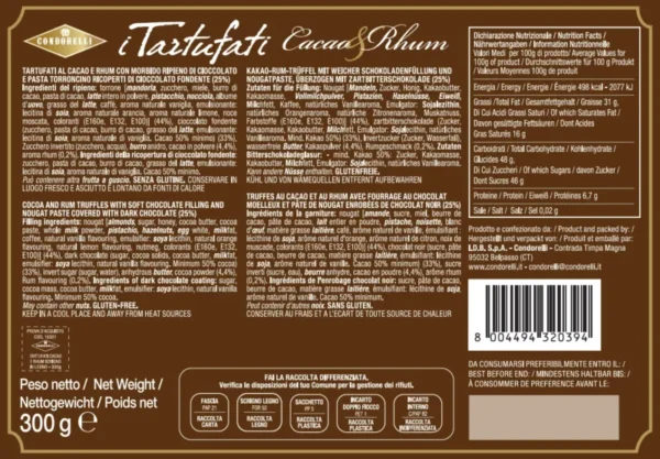 Tartufati cacao e rhum in confezione regalo in legno cernierata.